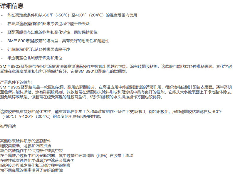 3M8902蓝色PET遮蔽无痕耐高温聚酯胶带